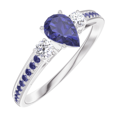 « L'ATELIER » NR. 161636Ring Weißgold 375/-(9Kt) - Blauer Saphir Tropfen 0.3 Karat - Seitliche Steine Diamant - Fassung Blauer Saphir
