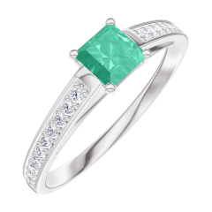 Ring Weißgold 375/-(9Kt) - Smaragd Prinzess 0.3 Karat - Fassung Diamant