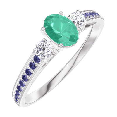 « L'ATELIER » NR. 162136Ring Weißgold 375/-(9Kt) - Smaragd Oval 0.3 Karat - Seitliche Steine Diamant - Fassung Blauer Saphir 5