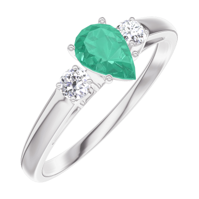 « L'ATELIER » NR. 162224Ring Weißgold 375/-(9Kt) - Smaragd Tropfen 0.3 Karat - Seitliche Steine Diamant