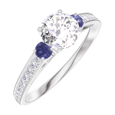 « L'ATELIER » NR. 162468Ring Weißgold 375/-(9Kt) - Diamant rund 0.5 Karat - Seitliche Steine Blauer Saphir - Fassung Diamant 4.5
