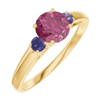« L'ATELIER » NR. 163062Ring Gelbgold 375/-(9Kt) - Rubin rund 0.5 Karat - Seitliche Steine Blauer Saphir 4.5