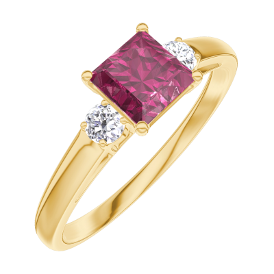 « L'ATELIER » NR. 163122Ring Gelbgold 375/-(9Kt) - Rubin Prinzess 0.5 Karat - Seitliche Steine Diamant