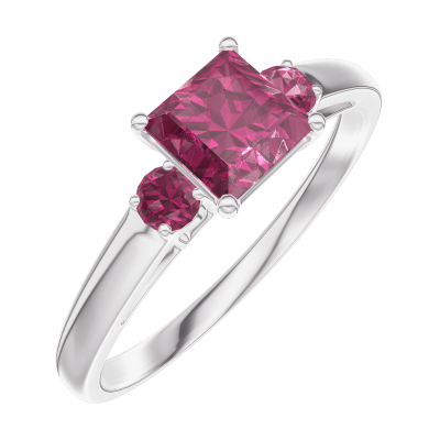 « L'ATELIER » NR. 163144Ring Weißgold 375/-(9Kt) - Rubin Prinzess 0.5 Karat - Seitliche Steine Rubin