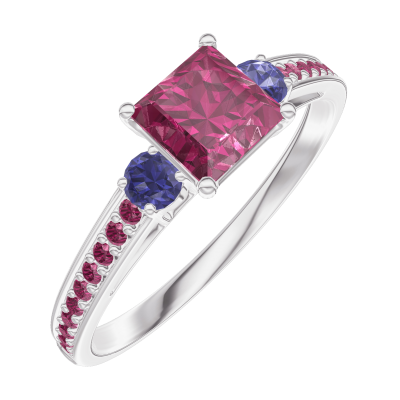 « L'ATELIER » NR. 163172Ring Weißgold 375/-(9Kt) - Rubin Prinzess 0.5 Karat - Seitliche Steine Blauer Saphir - Fassung Rubin
