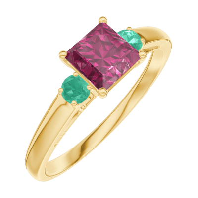 « L'ATELIER » NR. 163182Ring Gelbgold 375/-(9Kt) - Rubin Prinzess 0.5 Karat - Seitliche Steine Smaragd