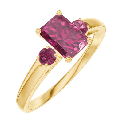 « L'ATELIER » NR. 163242Ring Gelbgold 375/-(9Kt) - Rubin Rechteckig 0.5 Karat - Seitliche Steine Rubin