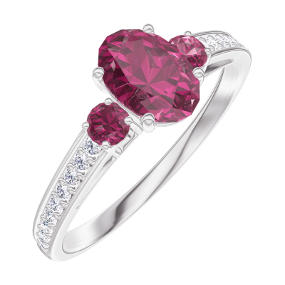 « L'ATELIER » NR. 163348Ring Weißgold 375/-(9Kt) - Rubin Oval 0.5 Karat - Seitliche Steine Rubin - Fassung Diamant