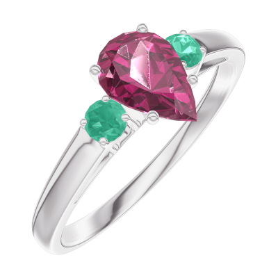 « L'ATELIER » Nº163484Ring Weißgold 375/-(9Kt) - Rubin Tropfen 0.5 Karat - Seitliche Steine Smaragd