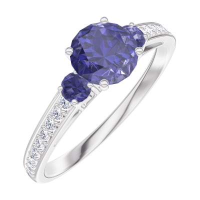 « L'ATELIER » Nº163668Ring Weißgold 375/-(9Kt) - Blauer Saphir rund 0.5 Karat - Seitliche Steine Blauer Saphir - Fassung Diamant 4.5