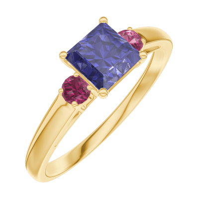 « L'ATELIER » NR. 163742Ring Gelbgold 375/-(9Kt) - Blauer Saphir Prinzess 0.5 Karat - Seitliche Steine Rubin