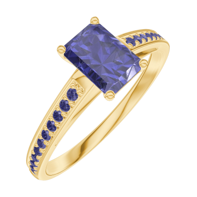« L'ATELIER » Nº163814Ring Gelbgold 375/-(9Kt) - Blauer Saphir Rechteckig 0.5 Karat - Fassung Blauer Saphir