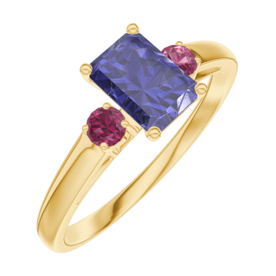 « L'ATELIER » Nº163842Ring Gelbgold 375/-(9Kt) - Blauer Saphir Rechteckig 0.5 Karat - Seitliche Steine Rubin