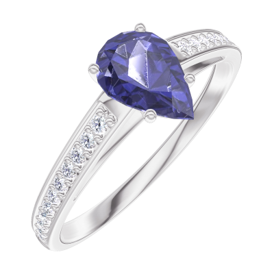 « L'ATELIER » NR. 164007Ring Weißgold 750/-(18Kt) - Blauer Saphir Tropfen 0.5 Karat - Fassung Diamant