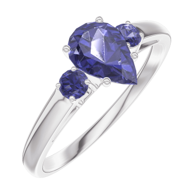« L'ATELIER » NR. 164063Ring Weißgold 750/-(18Kt) - Blauer Saphir Tropfen 0.5 Karat - Seitliche Steine Blauer Saphir