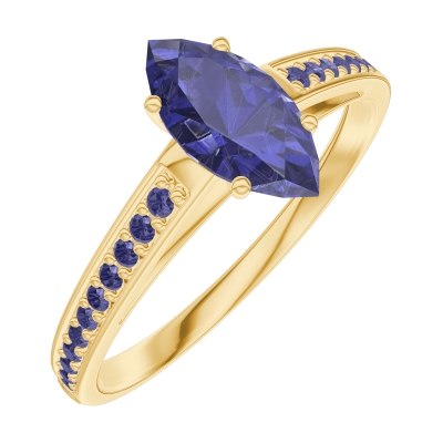 « L'ATELIER » Nº164113Ring Gelbgold 750/-(18Kt) - Blauer Saphir Marquise 0.5 Karat - Fassung Blauer Saphir