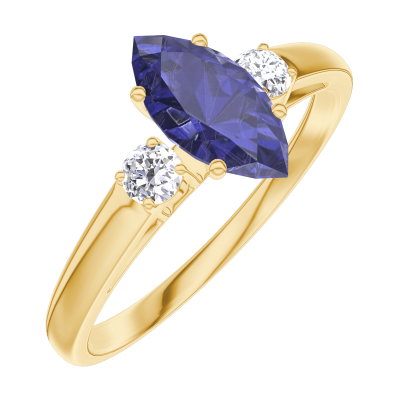 « L'ATELIER » NR. 164122Ring Gelbgold 375/-(9Kt) - Blauer Saphir Marquise 0.5 Karat - Seitliche Steine Diamant