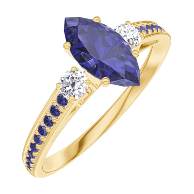 « L'ATELIER » Nº164134Ring Gelbgold 375/-(9Kt) - Blauer Saphir Marquise 0.5 Karat - Seitliche Steine Diamant - Fassung Blauer Saphir