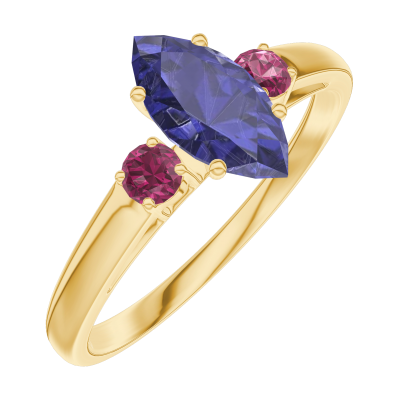 « L'ATELIER » NR. 164142Ring Gelbgold 375/-(9Kt) - Blauer Saphir Marquise 0.5 Karat - Seitliche Steine Rubin