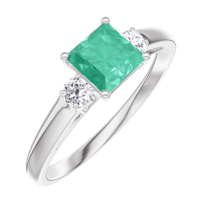 « L'ATELIER » NR. 164323Ring Weißgold 750/-(18Kt) - Smaragd Prinzess 0.5 Karat - Seitliche Steine Diamant