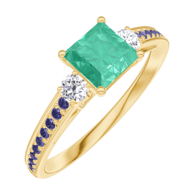 « L'ATELIER » NR. 164333Ring Gelbgold 750/-(18Kt) - Smaragd Prinzess 0.5 Karat - Seitliche Steine Diamant - Fassung Blauer Saphir