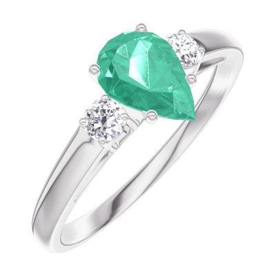 « L'ATELIER » Nº164624Ring Weißgold 375/-(9Kt) - Smaragd Tropfen 0.5 Karat - Seitliche Steine Diamant