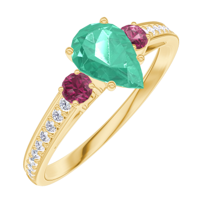 « L'ATELIER » Nº164645Ring Gelbgold 750/-(18Kt) - Smaragd Tropfen 0.5 Karat - Seitliche Steine Rubin - Fassung Diamant