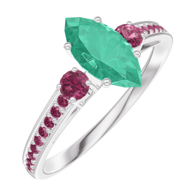 « L'ATELIER » NR. 164751Ring Weißgold 750/-(18Kt) - Smaragd Marquise 0.5 Karat - Seitliche Steine Rubin - Fassung Rubin