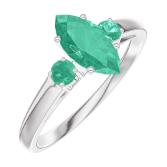 Ring Weißgold 375/-(9Kt) - Smaragd Marquise 0.5 Karat - Seitliche Steine Smaragd