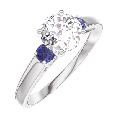 « L'ATELIER » NR. 164864Ring Weißgold 375/-(9Kt) - Diamant rund 0.7 Karat - Seitliche Steine Blauer Saphir 4.9 (7)