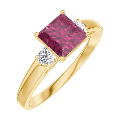 « L'ATELIER » NR. 165521Ring Gelbgold 750/-(18Kt) - Rubin Prinzess 0.7 Karat - Seitliche Steine Diamant