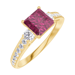 « L'ATELIER » NR. 165525Ring Gelbgold 750/-(18Kt) - Rubin Prinzess 0.7 Karat - Seitliche Steine Diamant - Fassung Diamant