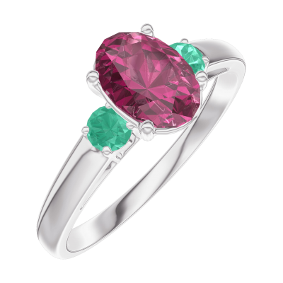 « L'ATELIER » Nº165784Ring Weißgold 375/-(9Kt) - Rubin Oval 0.7 Karat - Seitliche Steine Smaragd