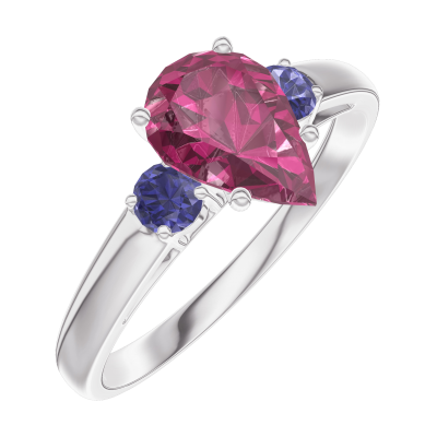 « L'ATELIER » Nº165864Ring Weißgold 375/-(9Kt) - Rubin Tropfen 0.7 Karat - Seitliche Steine Blauer Saphir