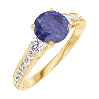 « L'ATELIER » NR. 166025Ring Gelbgold 750/-(18Kt) - Blauer Saphir rund 0.7 Karat - Seitliche Steine Diamant - Fassung Diamant 4.9