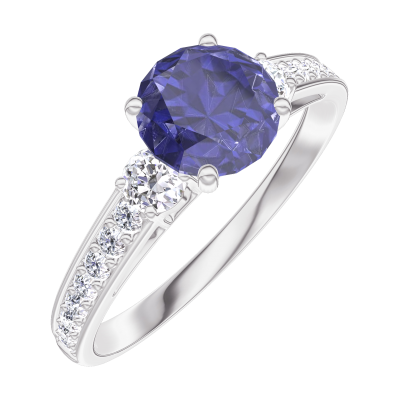 « L'ATELIER » NR. 166028Ring Weißgold 375/-(9Kt) - Blauer Saphir rund 0.7 Karat - Seitliche Steine Diamant - Fassung Diamant 4.9