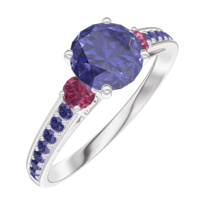 « L'ATELIER » NR. 166056Ring Weißgold 375/-(9Kt) - Blauer Saphir rund 0.7 Karat - Seitliche Steine Rubin - Fassung Blauer Saphir 4.9 (7)