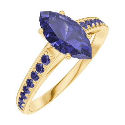 « L'ATELIER » Nº166514Ring Gelbgold 375/-(9Kt) - Blauer Saphir Marquise 0.7 Karat - Fassung Blauer Saphir