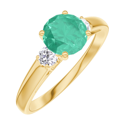 « L'ATELIER » NR. 166621Ring Gelbgold 750/-(18Kt) - Smaragd rund 0.7 Karat - Seitliche Steine Diamant 4.9