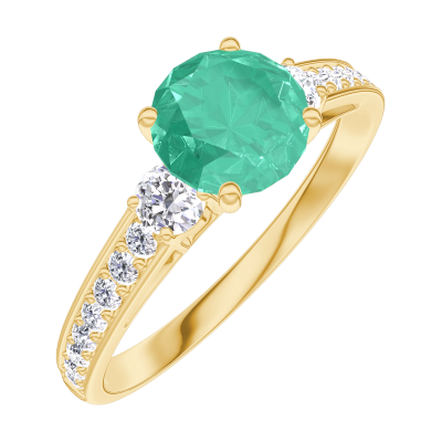 « L'ATELIER » Nº166625Ring Gelbgold 750/-(18Kt) - Smaragd rund 0.7 Karat - Seitliche Steine Diamant - Fassung Diamant 4.9