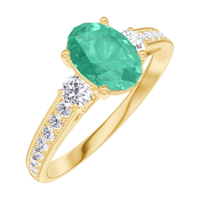 « L'ATELIER » NR. 166925Ring Gelbgold 750/-(18Kt) - Smaragd Oval 0.7 Karat - Seitliche Steine Diamant - Fassung Diamant