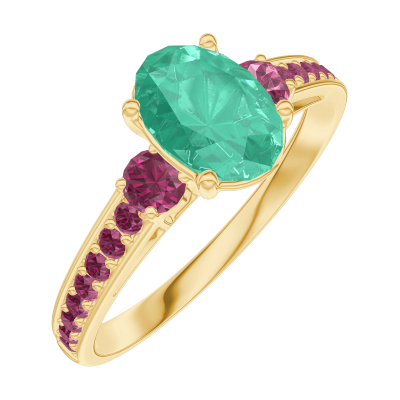 « L'ATELIER » NR. 166949Ring Gelbgold 750/-(18Kt) - Smaragd Oval 0.7 Karat - Seitliche Steine Rubin - Fassung Rubin