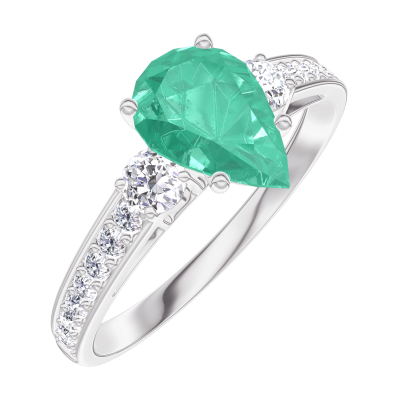 « L'ATELIER » NR. 167028Ring Weißgold 375/-(9Kt) - Smaragd Tropfen 0.7 Karat - Seitliche Steine Diamant - Fassung Diamant