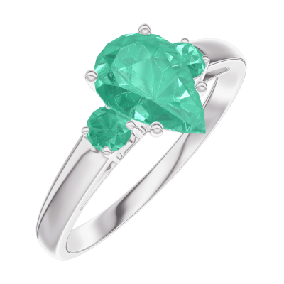 « L'ATELIER » NR. 167083Ring Weißgold 750/-(18Kt) - Smaragd Tropfen 0.7 Karat - Seitliche Steine Smaragd