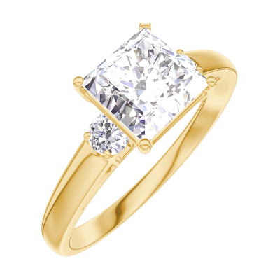 « L'ATELIER » NR. 167321Ring Gelbgold 750/-(18Kt) - Diamant Prinzess 1 Karat - Seitliche Steine Diamant