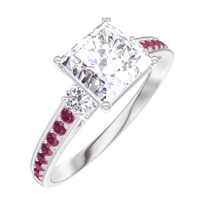 « L'ATELIER » Nº167332Ring Weißgold 375/-(9Kt) - Diamant Prinzess 1 Karat - Seitliche Steine Diamant - Fassung Rubin