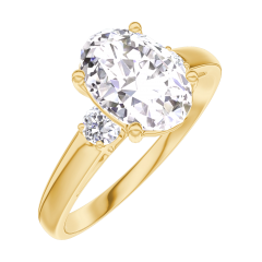 Ring Gelbgold 375/-(9Kt) - Diamant Oval 1 Karat - Seitliche Steine Diamant