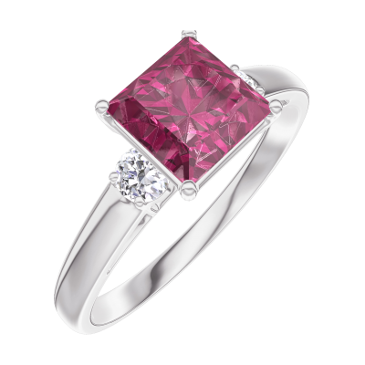 « L'ATELIER » NR. 167923Ring Weißgold 750/-(18Kt) - Rubin Prinzess 1 Karat - Seitliche Steine Diamant