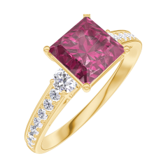 « L'ATELIER » NR. 167926Ring Gelbgold 375/-(9Kt) - Rubin Prinzess 1 Karat - Seitliche Steine Diamant - Fassung Diamant