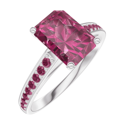 « L'ATELIER » Nº168012Ring Weißgold 375/-(9Kt) - Rubin Rechteckig 1 Karat - Fassung Rubin 4.6